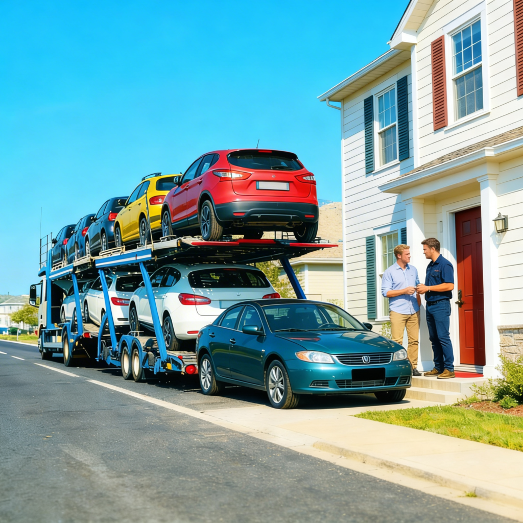 Door-to-door auto transport is a convenient shipping service where we pick up your vehicle from any location you choose, your home, office, or elsewhere, and deliver it directly to your destination. No terminals, no meet-ups, no hassle. Your driver coordinates with you ahead of time, confirming arrival so you're never waiting. If your street is too tight for our trucks, we'll simply arrange a nearby meeting spot.